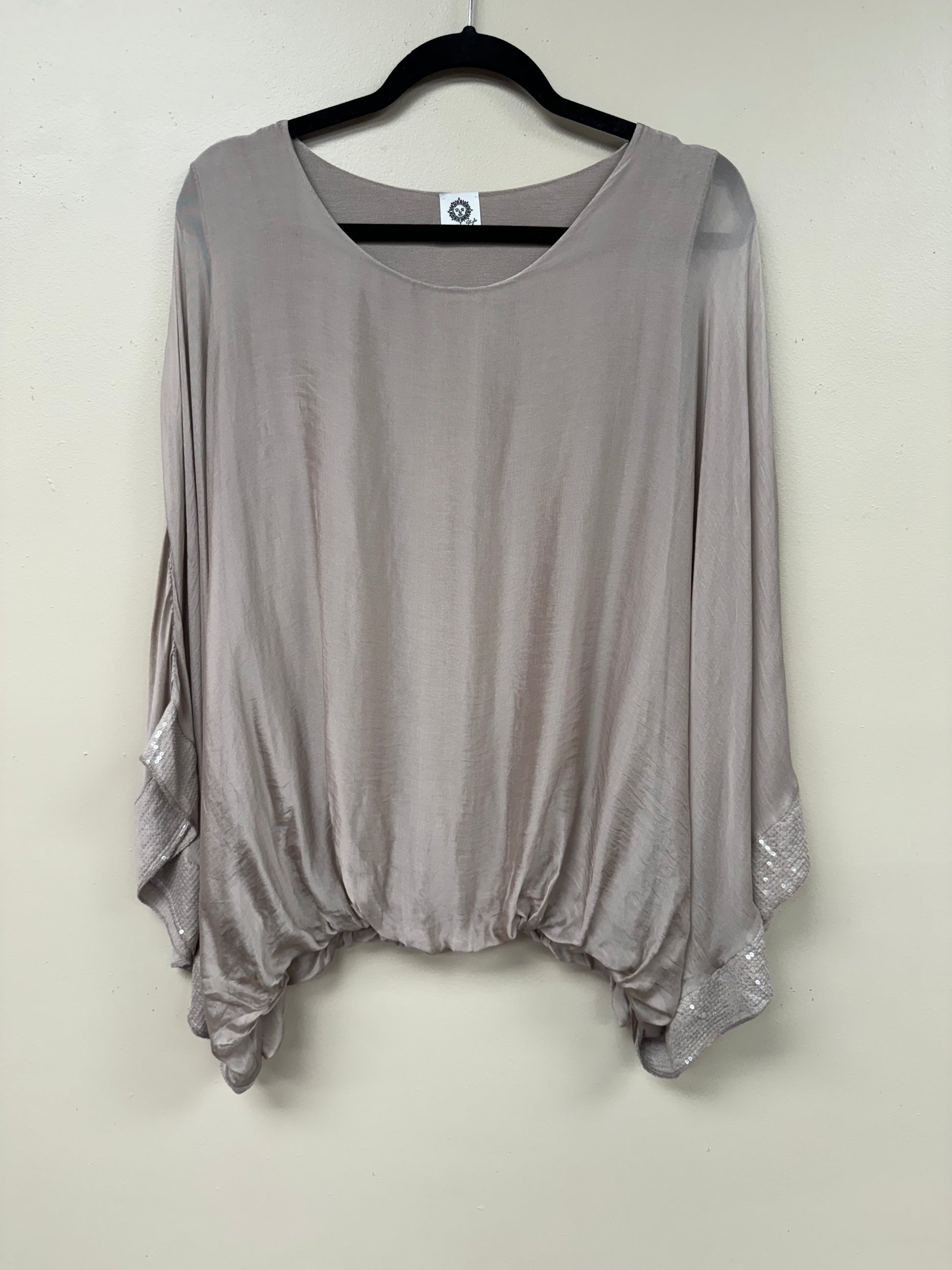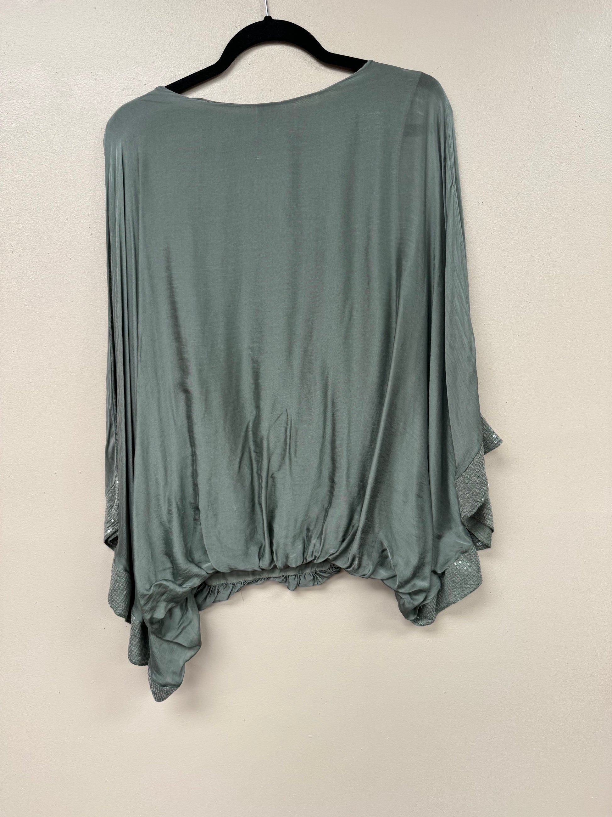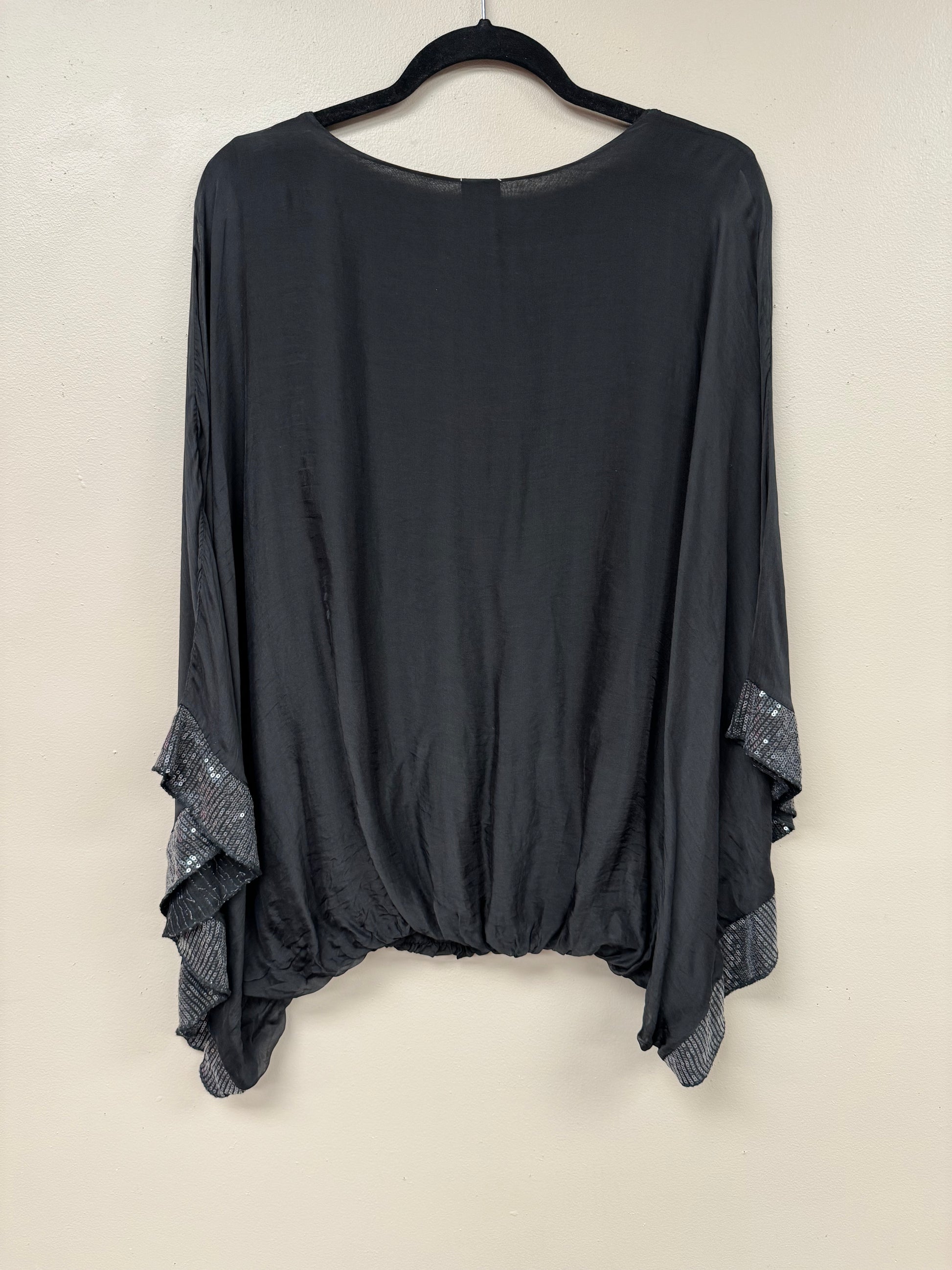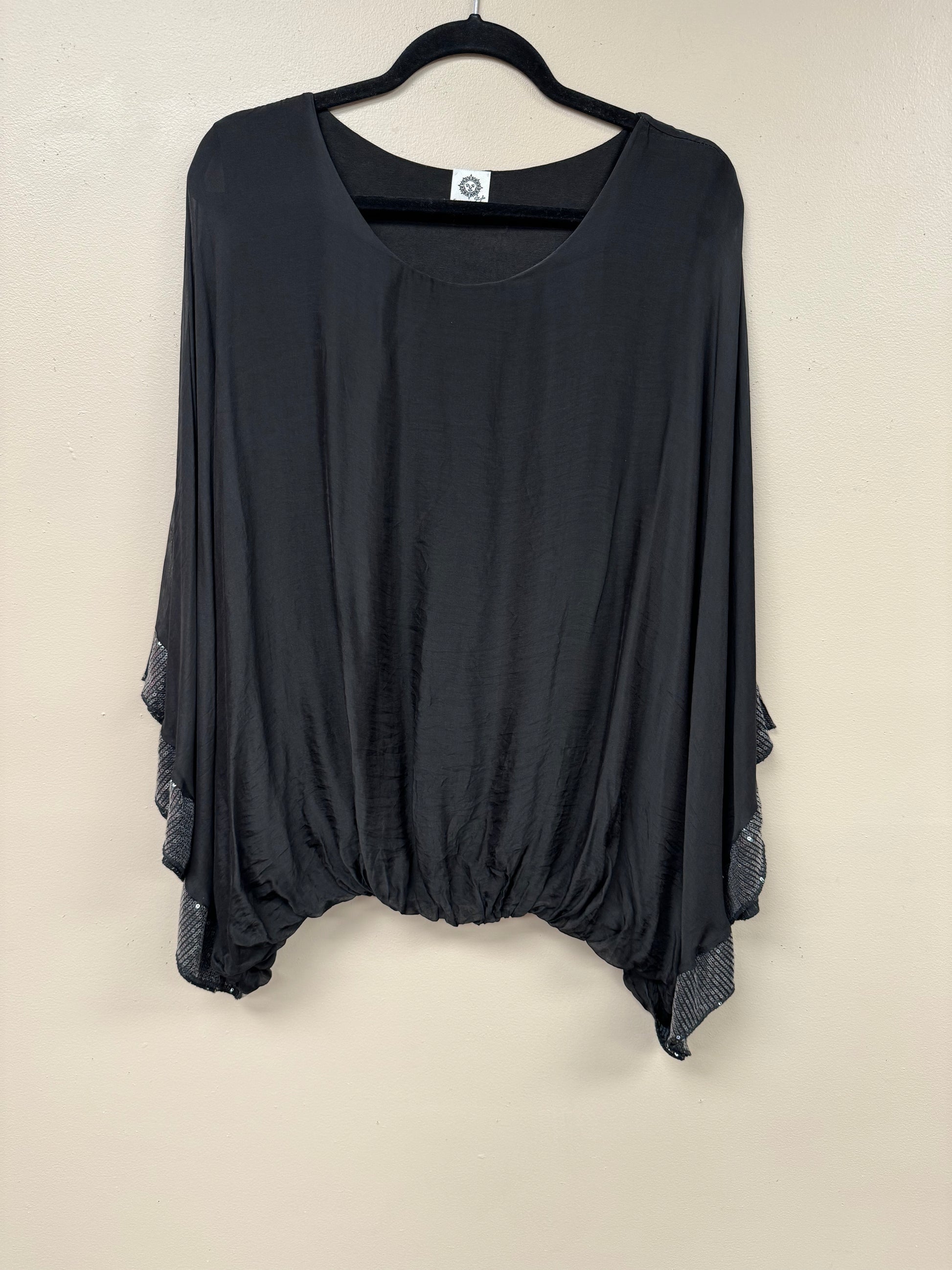 Italian, silk caftan top sequence sleeves.