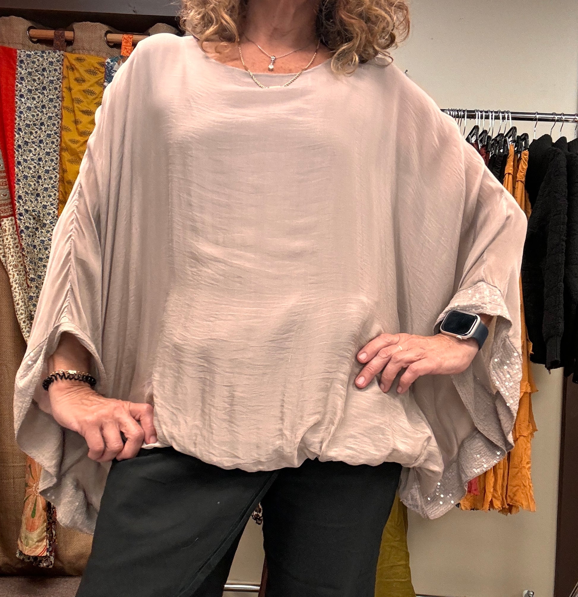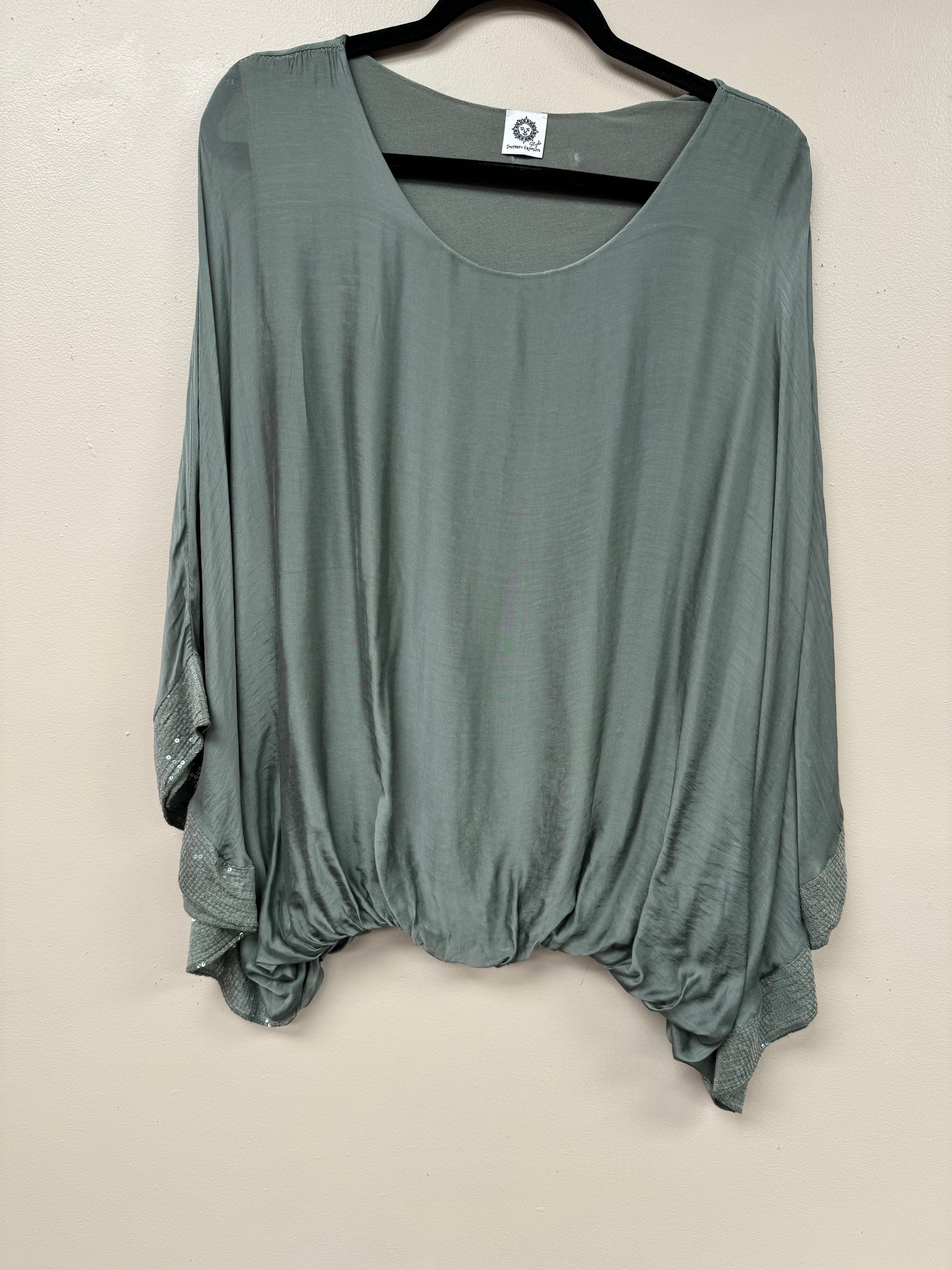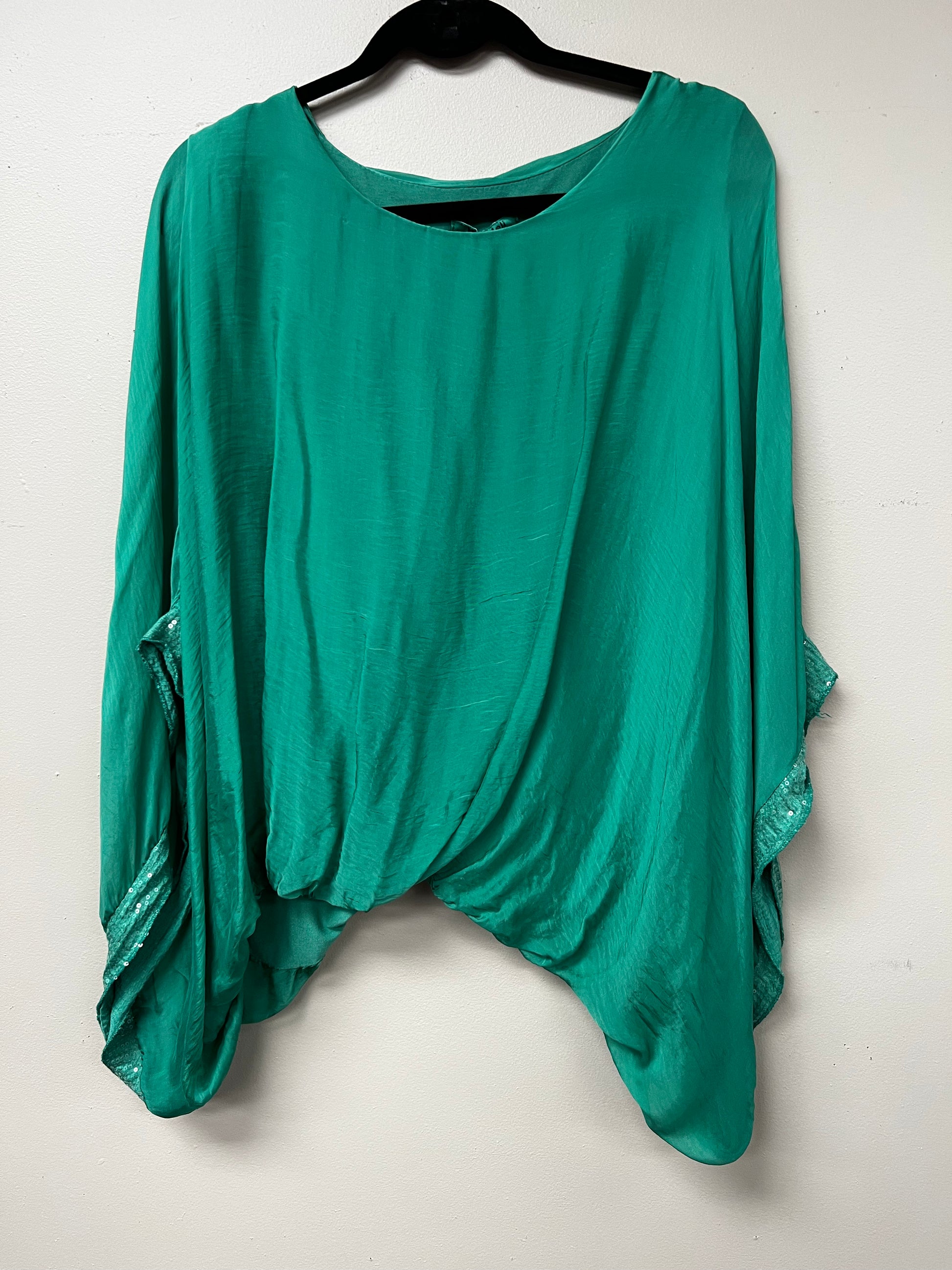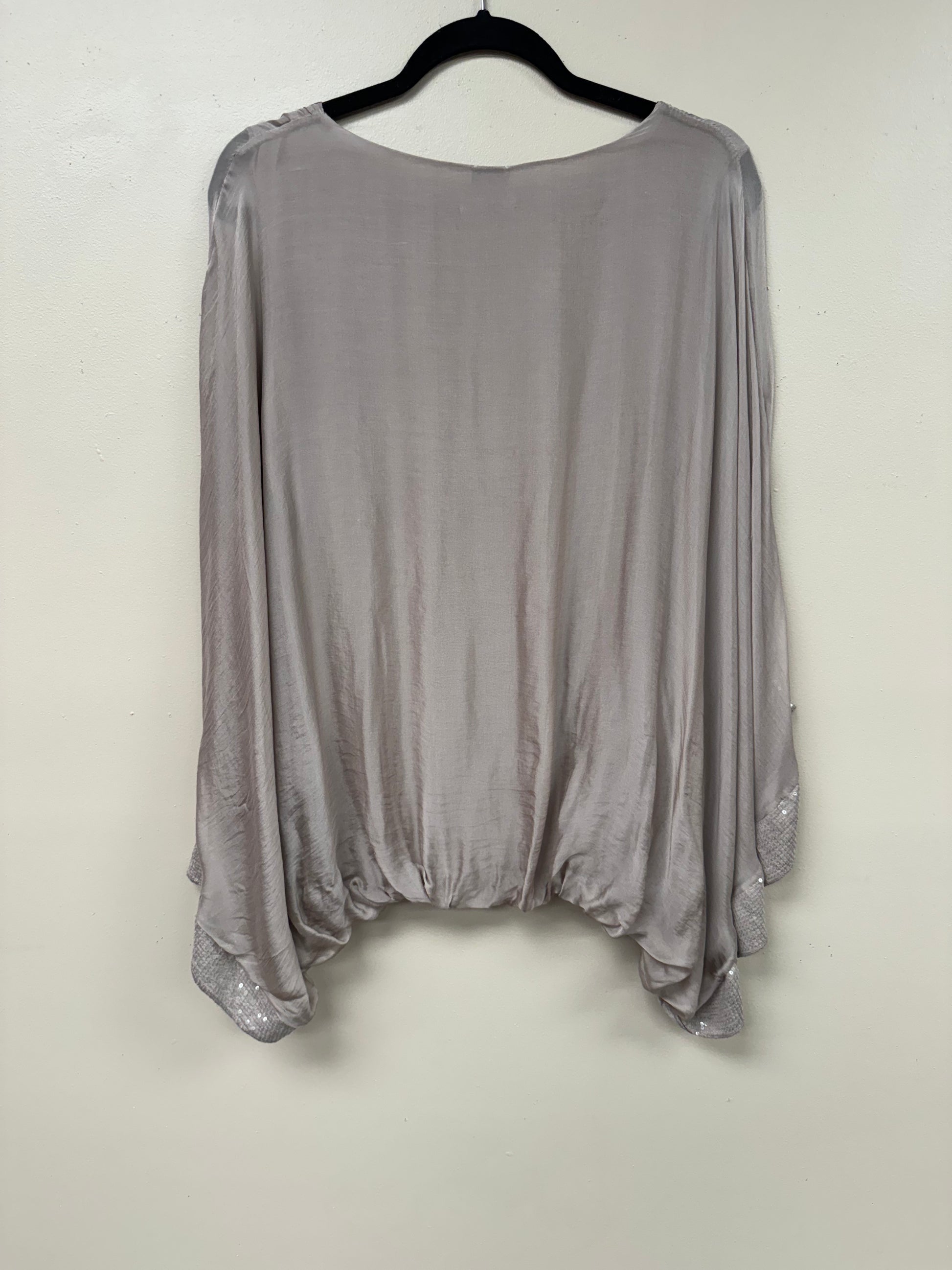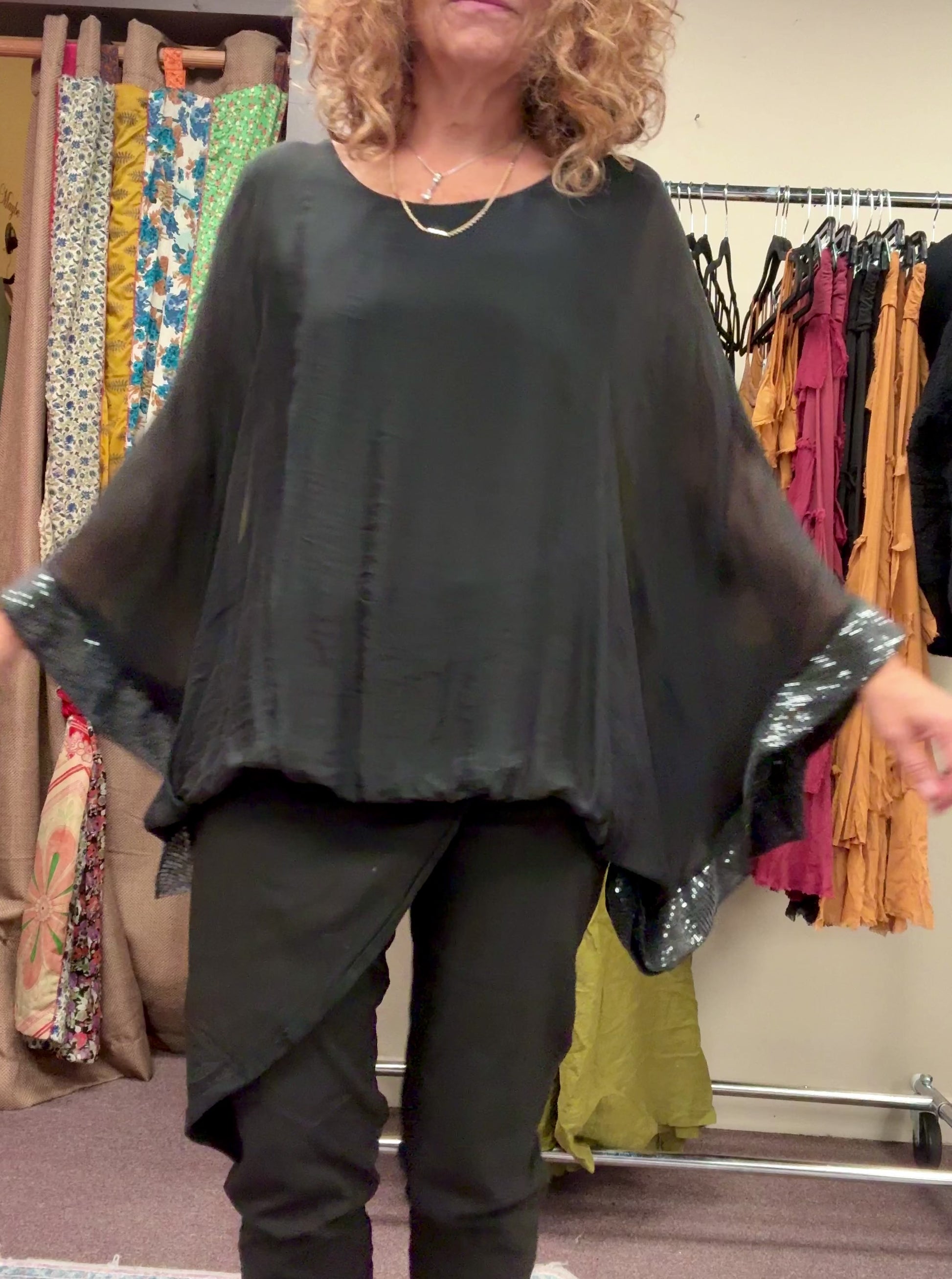 Italian, silk caftan top sequence sleeves.