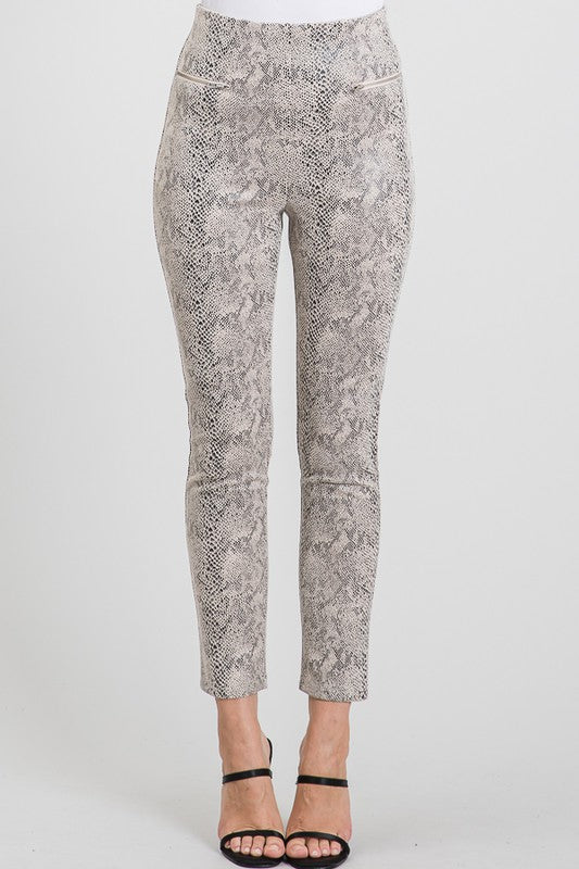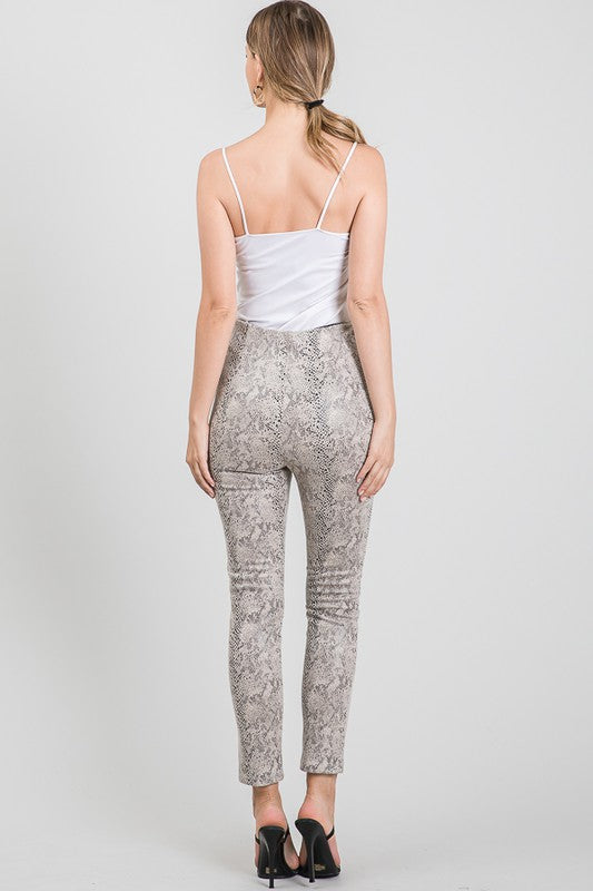 Taupe Snake Suede Zipper Trim Leggings Pants